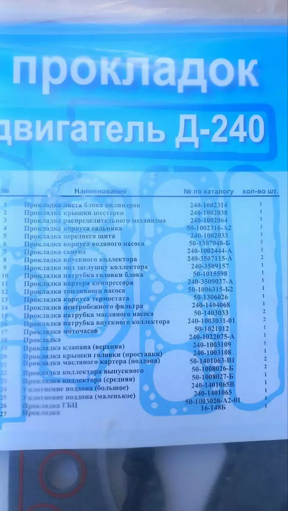 Р/к двигателя Д-240 (неполный)Перечень прокладок, смотрите на фото 2